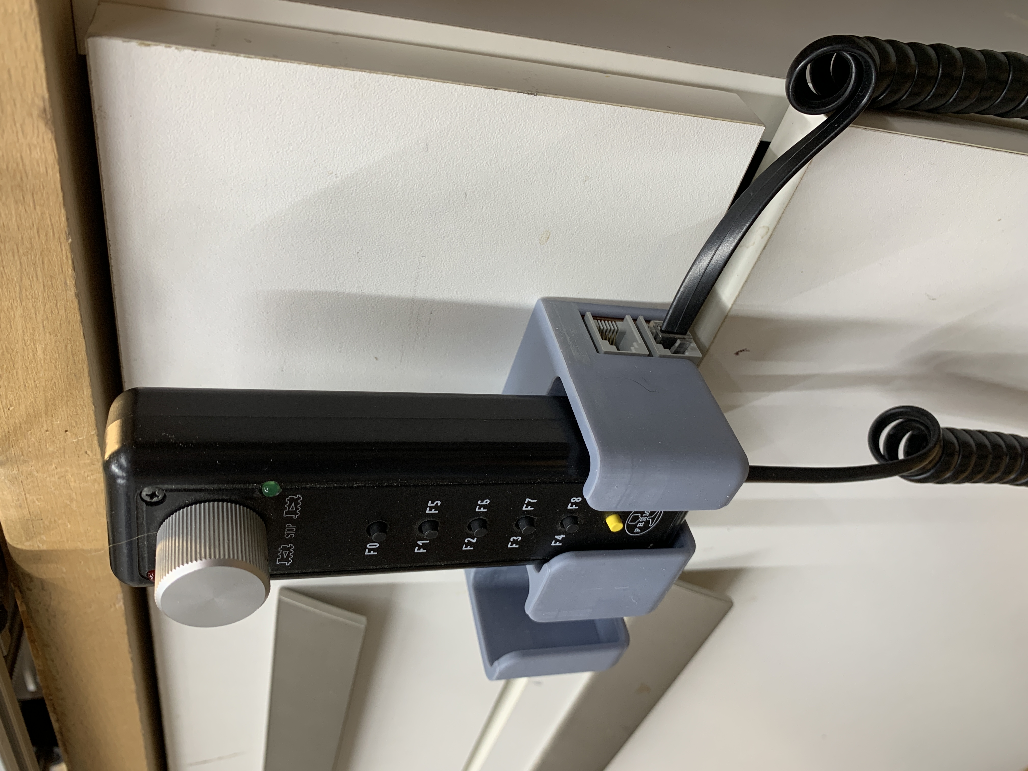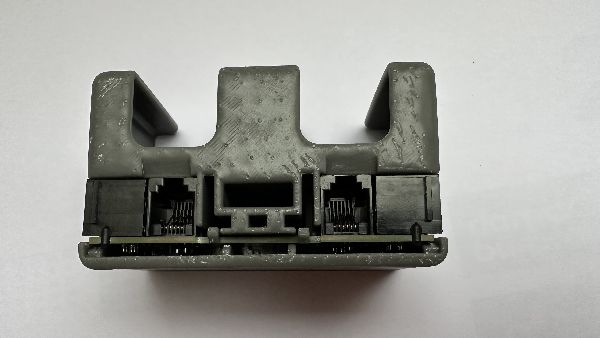Im FREMO-Forum bin ich auf einen Beitrag gestossen, bei dem es um einen 3D-gedruckten Fred(i)-Halter ging. Da ist mir der Gedanke gekommen, hier mit einer kleinen Verteilerplatine mit RJ12-Buchsen einen LocoNet-Verteiler zu integrieren.