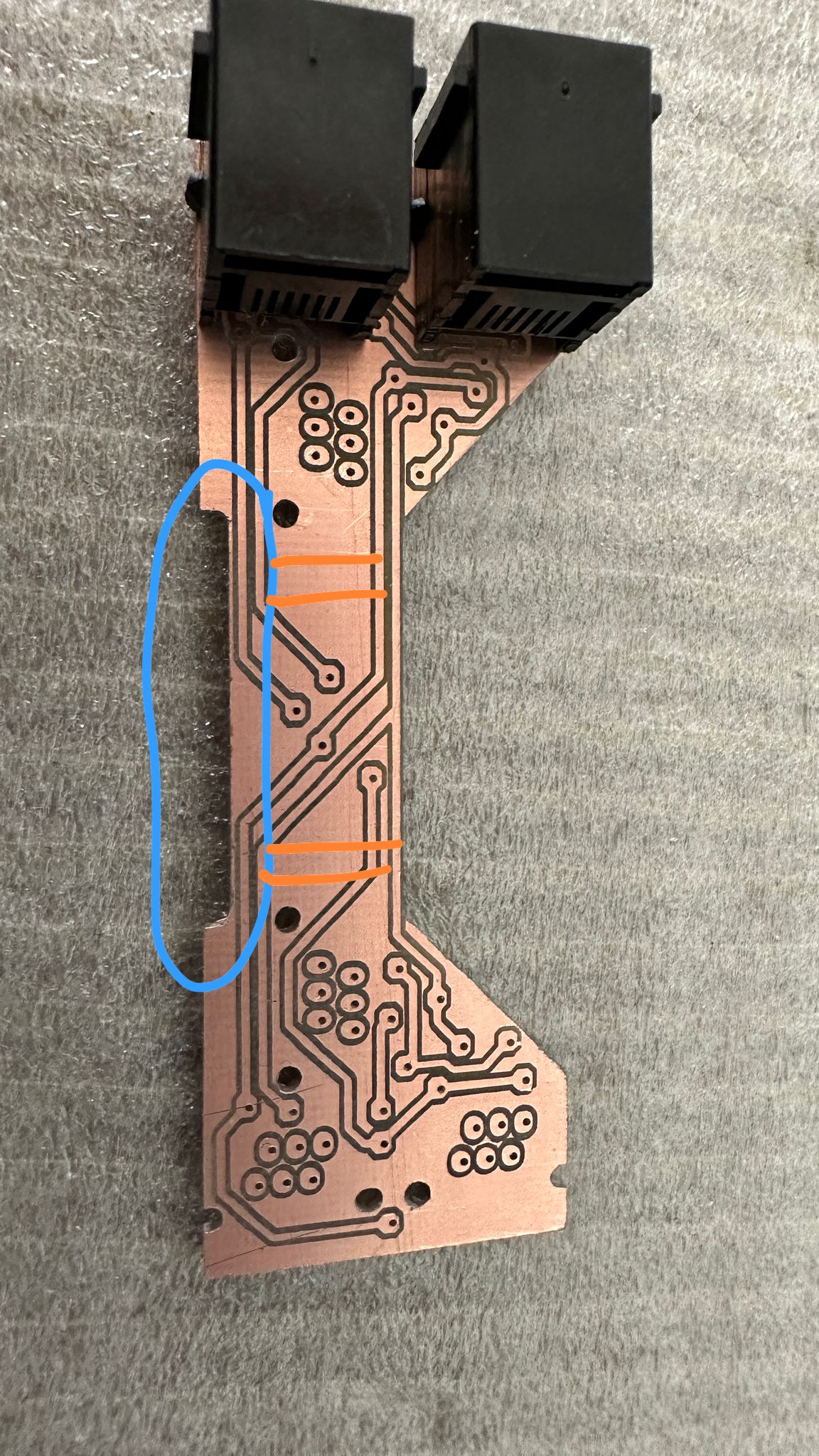 Ich habe dann noch etwas mehr Platz für die Leiterkarte schaffen müssen, die Durchkontaktierungen habe ich in einen Bereich neben den Rasthaken verschoben, damit da nichts beschädigt wird.