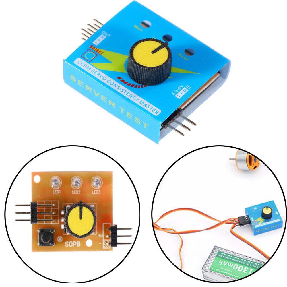 Da ich ja auf meinen Module als Weichenantrieb Servo's einsetze, und die für den Unterflurantrieb in die Mittel-Stellung bringen muß, habe ich im Netz diesen Servo-Tester gefunden: