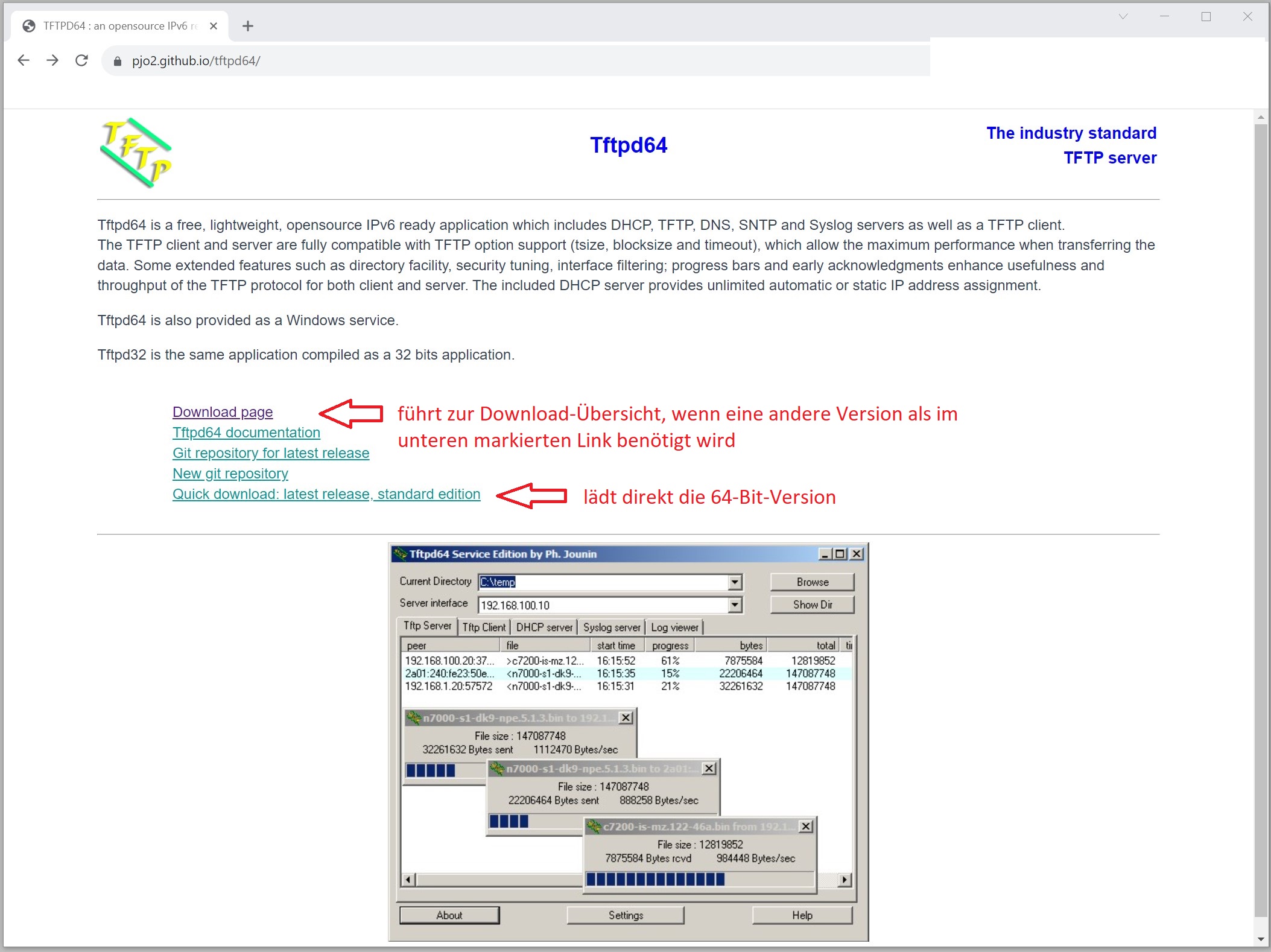 Im Syslog der TFTP-Software kann dies beobachtet werden.