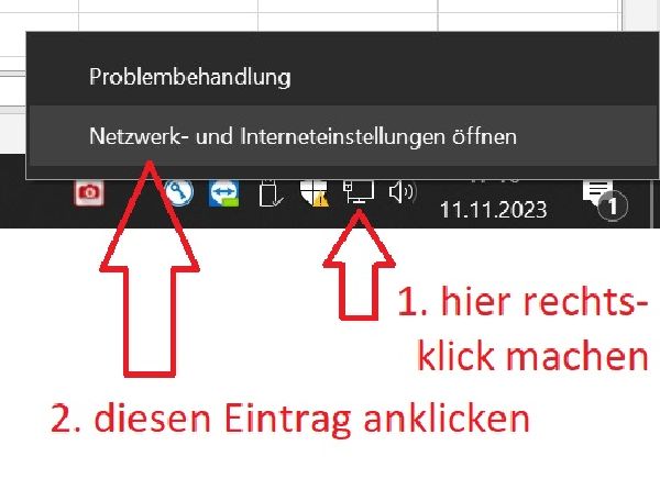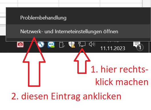 Einstellen der IP-Adresse: unten rechts in der Ecke des Bildschirm die Netzwerk-Verbindung öfnen