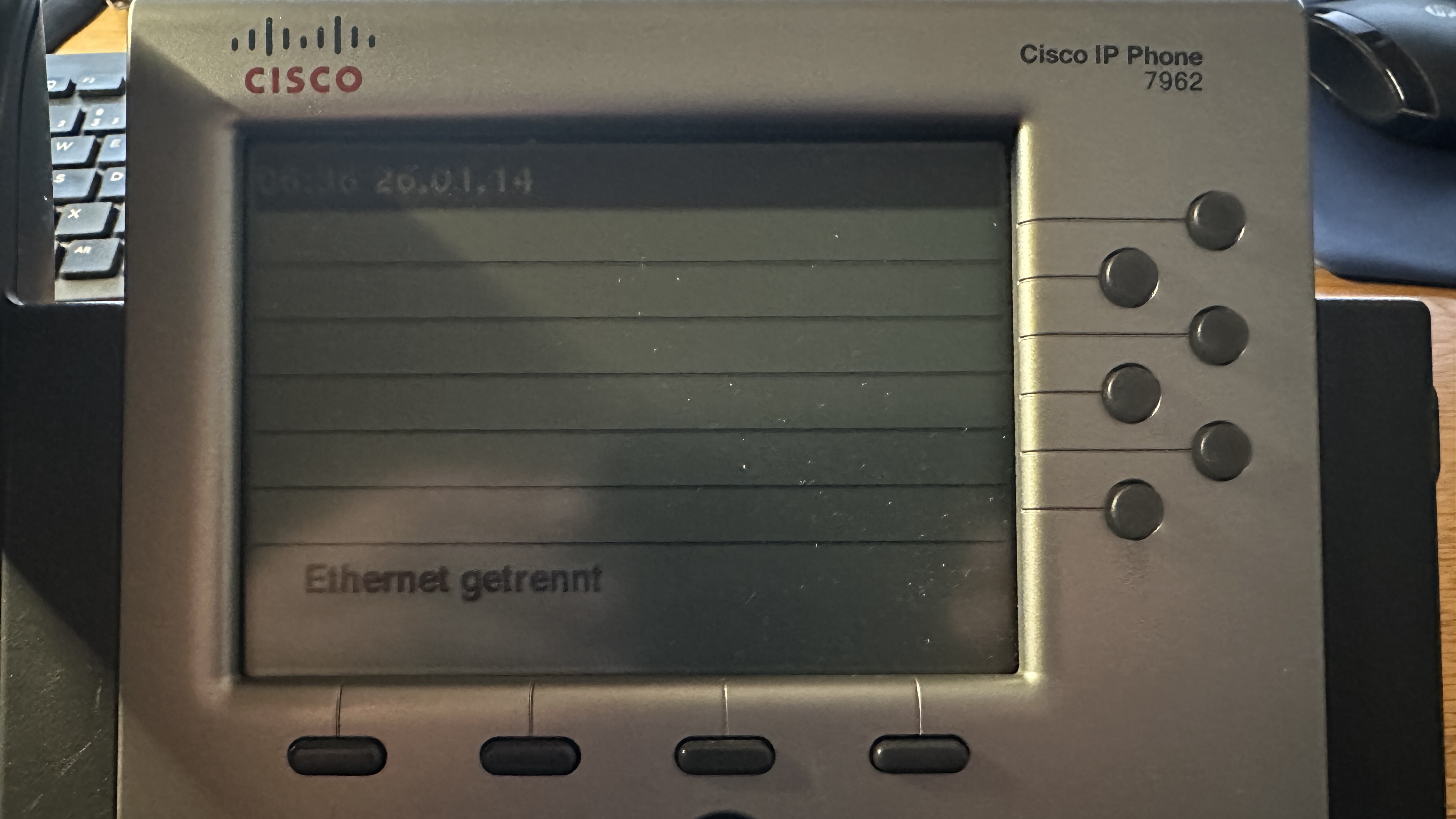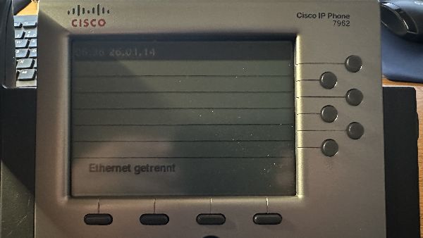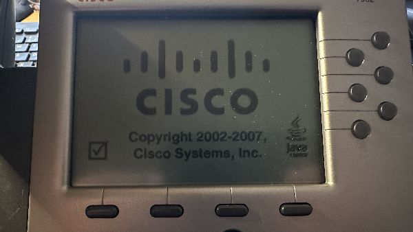 Während des Boot-Vorgangs wird das Cisco-Logo angezeigt, danach wechselt das Display mit einem Linien-Muster