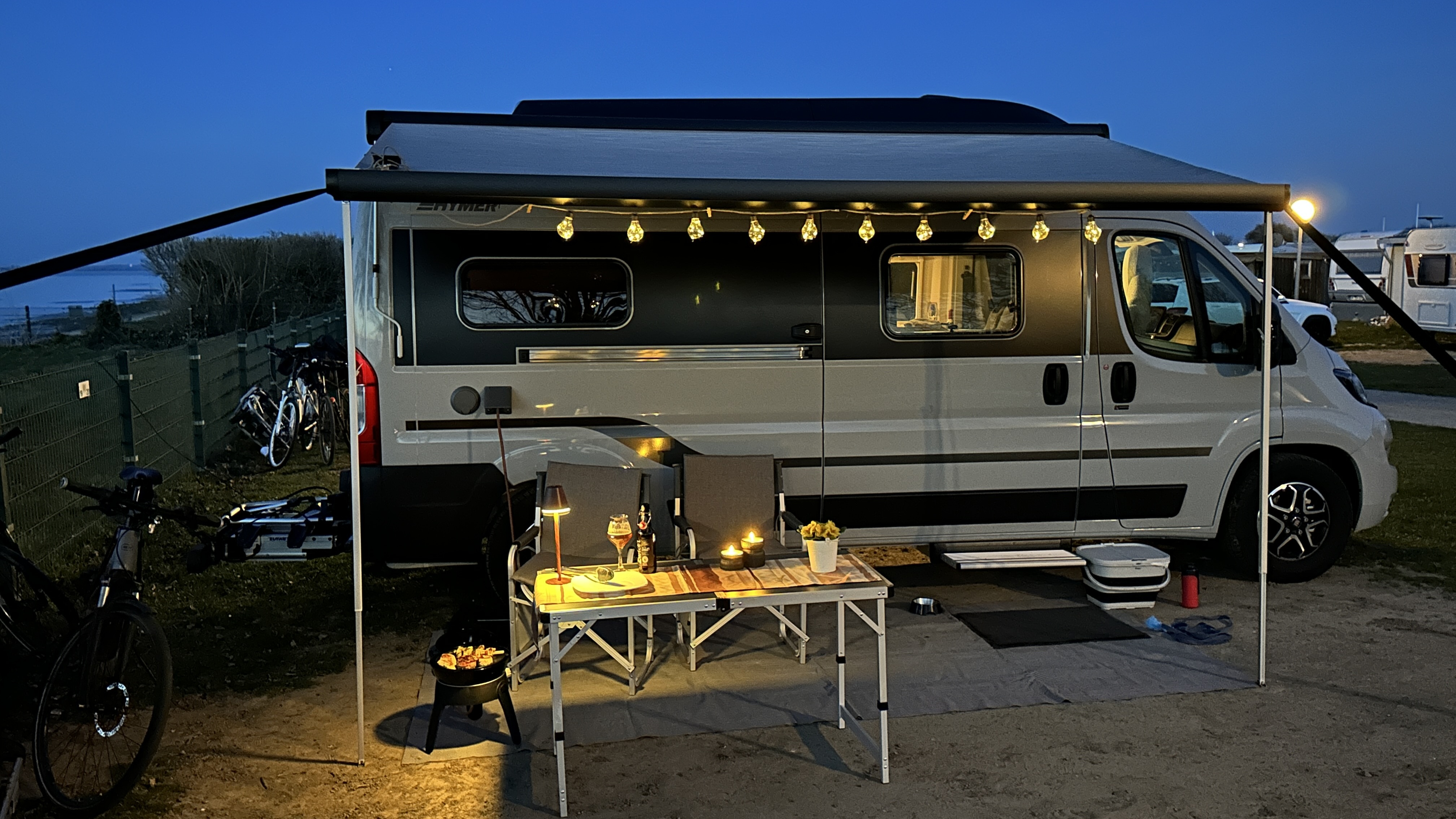 Es sind dann noch weitere Camper angereist, die sich in der Reihe direkt am Gitterzaun hingestellt haben, haben wir nach einem anderen Platz gefragt und eine Alternative bekommen