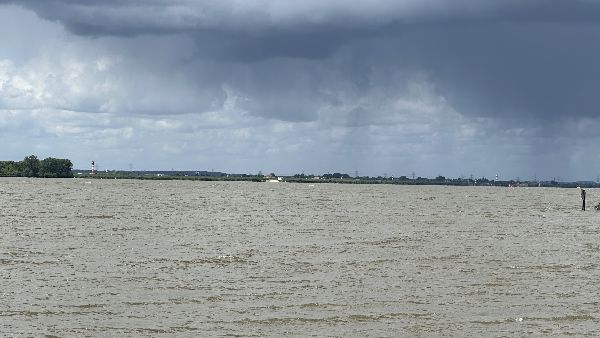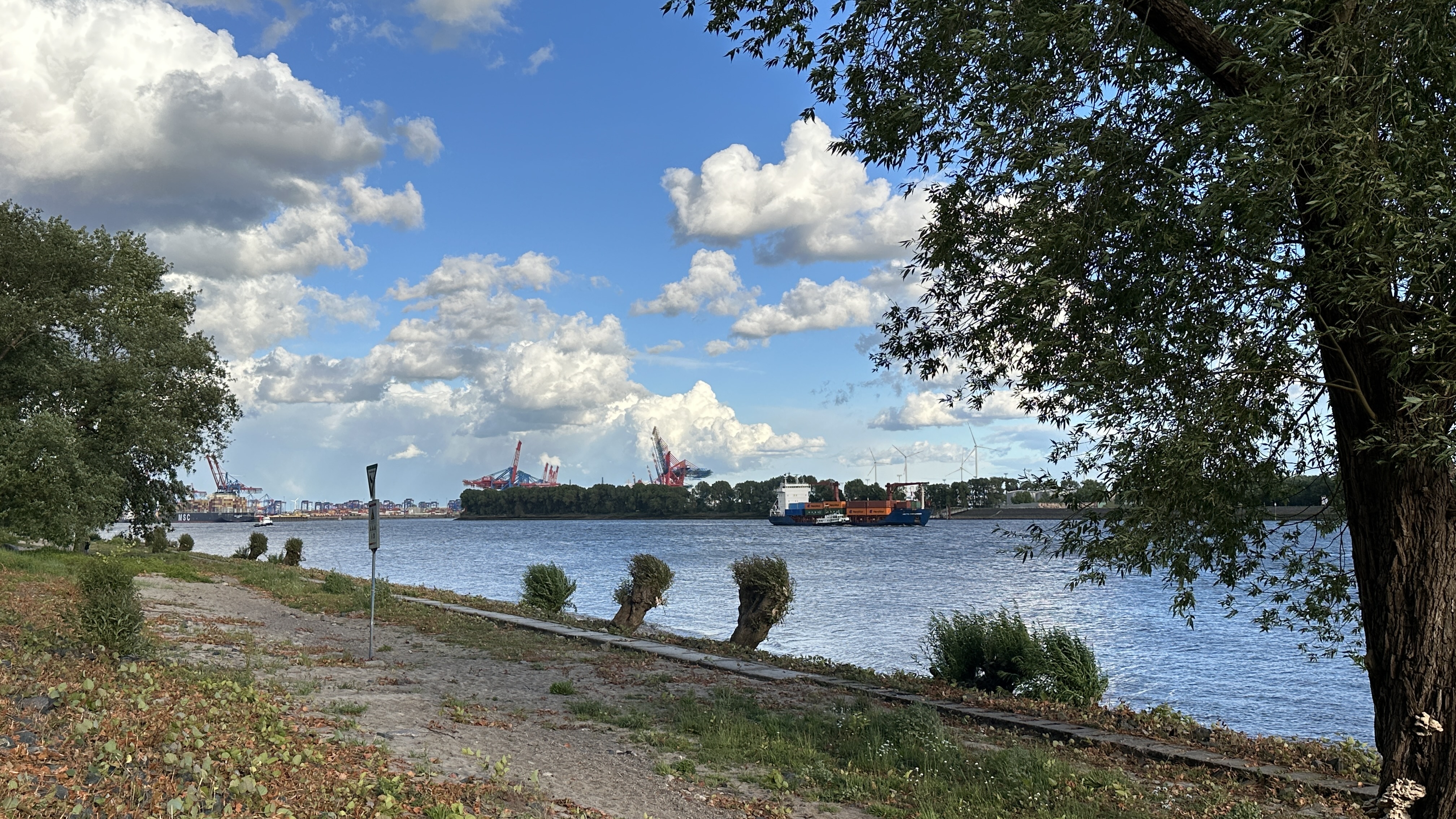 Toller Radweg von Blankenese nach Hamburg - an einer Stelle haben wir irgendwie ein Schild übersehen - wir waren dann auf einem Fußweg, dort wären wir mir dem Handeanhänger nicht weiter gekommen …