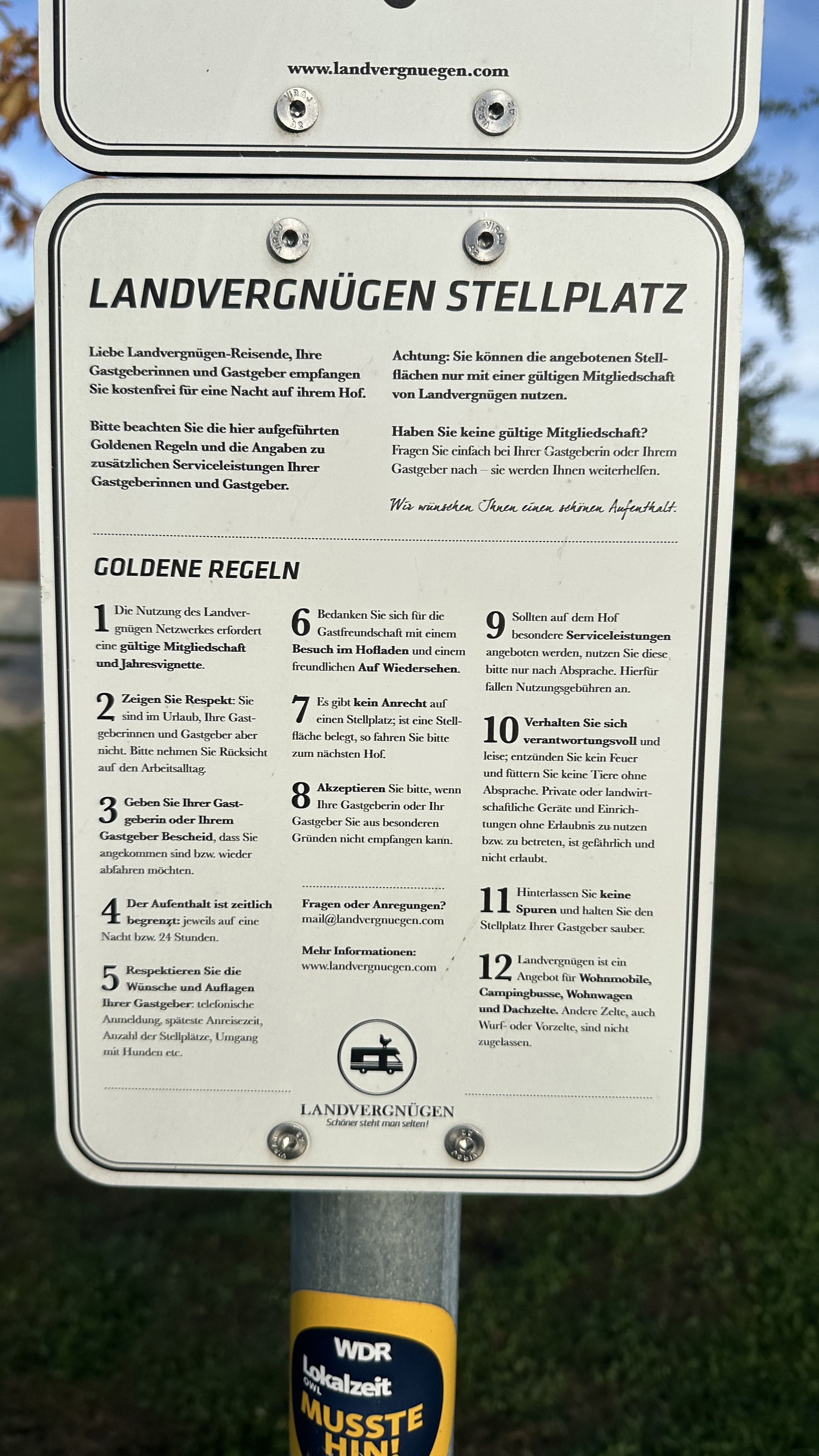 Da haben wir auf dem Hof angefragt und die Erlaubnis bekommen, obwohl wir nicht Mitglied des "Landvergnügen" sind, dort übernachten zu können.